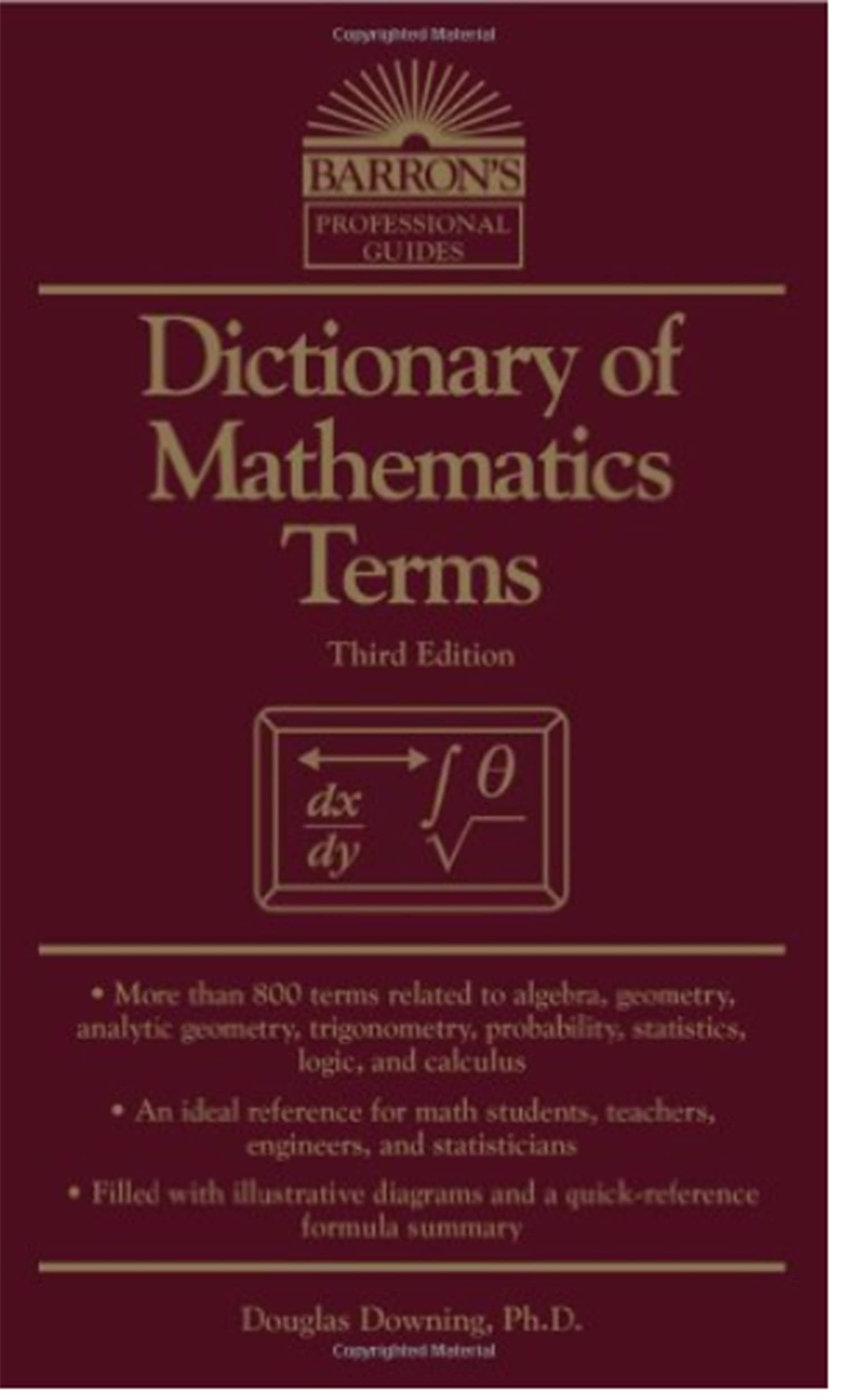 This quick-reference dictionary for math students, teachers, engineers, and statisticians defines more than 700 terms related to algebra, geometry, analytic geometry, trigonometry, probability, statistics, logic, and calculus. It also lists and defines mathematical symbols, includes a brief table of integrals, and describes how to derive key theorems. Filled with illustrative diagrams and equations.