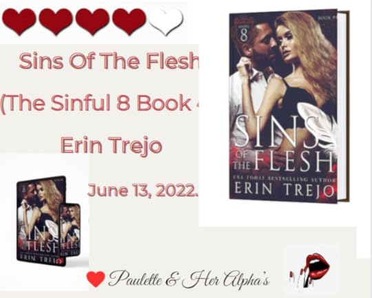 When his sister tells him he needs to go to Sky, that it's time for him to let go of the past as she tells him that he is in love. When J goes to confront Sky he tells her that the woman he was with was his sister and that he needs and wants her in his life as he can't live without her. Now they will start over but not before J tells her he wants her to come back to the club as he needs to talk to her. As these two confess the love they have for each other, J asks Sky to be his wife and they go to the courthouse to get married. But their happiness maybe short lived when J is whisked away again by the FBI leaving Sky behind as Bana has returned and is after him but J is outraged that Sky is left alone even though he is reassured by the FBI that she is protected, J fears for the worse. You are left on edge with an ending that was full of suspense and drama when Sky learns that J has been taken and she becomes a target. Will history repeat itself as J fears he may lose Sky? Erin Trejo has once again amazed her readers with this new series. Sins of the Flesh is a must read, you will not be disappointed, you will only want more!