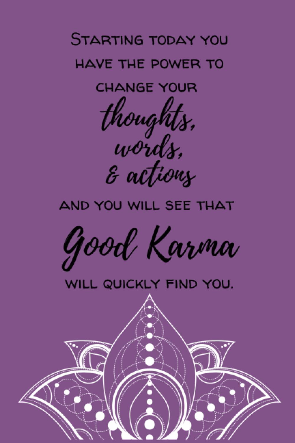 Notebook 6x9" lined: Journal with Karma quotation, positive thoughts, words, and actions, 120 pages