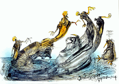 In Battersea Park a few commuters are hurrying along the gravel paths and pot-holed roadways. The gondola that adverts the Gondola Café is heeled over in the muddy waters of the boating lake. On the far shore rises the rockery, where my smaller children like to clamber in teensy ravines choked with empty beer cans. So the sublime ends. I work my way down through the glades and avenues, a Victorian conception of a municipal garden-for-all, impose atop this old shambles where once gypsies camped and knackers boiled horses’ corpses down for glue (23).