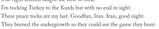 Seidel's dark confessional is part seance, calling dark aspects of our private thoughts out to deal with. So far these poems do some dirty (and I feel necessary)work.