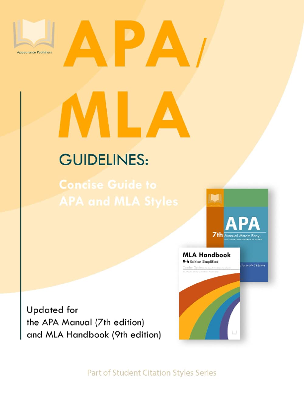 “APA/MLA Concise Guide to APA and MLA Styles” was written specifically for the updated edition of the American Psychological Association Publication Manual (APA 7th edition) and MLA Handbook (MLA 9th edition) and includes 80+ examples of different references for each style.The guide consists of 2 Guide to APA Manual (7th Edition)Concise Guide to MLA Handbook (9th Edition)Concise Guide to APA Manual (7th Edition)Revised according to the 7th edition of the APA Manual, this guide is offering general format and examples of layouttitle pageabstractcontentsheadingsin-text citationsquotationsreference listfootnotesliststables and figuresnotesappendices, etc.among others includingAPA Student Sample Paper andAPA Professional Sample Paper.Concise Guide to MLA Handbook (9th Edition)With this guide, you will be able to format your paper according to the MLA style right away thanks to its easy-to-navigate structure and step-by-step guidelines on setting up research papers in MLA format.Revised according to the 9th edition of the MLA Handbook, this guide is offering general format and examples of layouttitle pagerunning head, headings, liststables, figures, and examplesin-text citationsquotations, paraphrases, making changes to quotationsWorks Cited listfootnotes and endnotestext styling (spelling, punctuation, capitalization, italics, numbers) andabbreviations, etc.among others includingMLA-formatted Sample Paper.Learn more about spelling, punctuation, capitalization, italics, abbreviations, numbers, etc.This student guide reflects the newest version of the APA Manual and MLA Handbook and will address the vast majority of questions about using APA 7th edition and MLA 9th edition correctly with 80+ examples of references.
