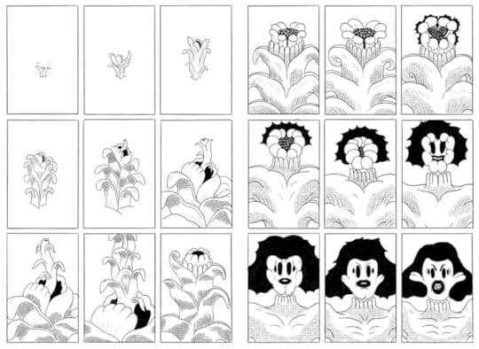 Anyway, this is a surreal comic that is pretty funny. It looks quite a bit like a horror coloring book. Doesn't really seem to be advocating "get back to nature!" Jesse Jacobs blurbs the book, and so that reminds me of his Safari Honeymoon; a combo of body horror and plant monsters. Little Shop of Horrors with middle-aged suburban women!