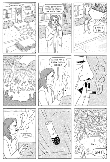 A debut comic by Montreal artist Geneviève Lebleu. Aw, a women's comic: Several middle-class, middle-aged get together, there's tea and gardening! But this is a horror comic, not a cosy mystery, where the women actually do not get along. At all. And something is in that tea, and the plants are sentient. . . and colorful, but a little scary! Weeding the garden can get you in big trouble!