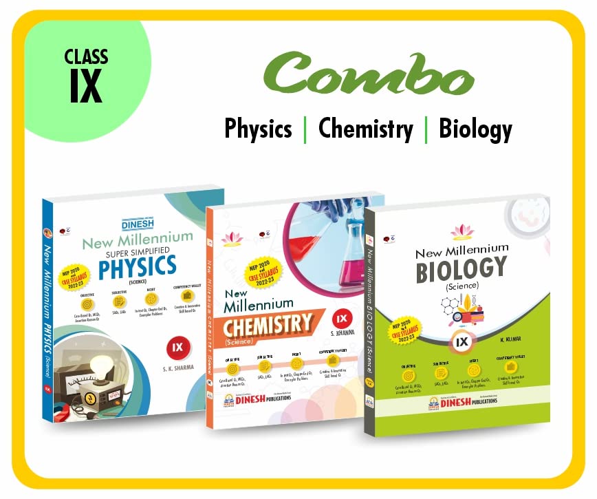 DINESH SCIENCE COMBO Class 9 - New Millennium Textbooks of PHYSICS, CHEMISTRY, BIOLOGY Class 9