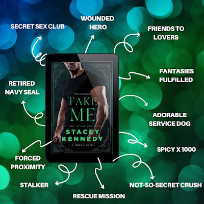 Take Me is book five in Stacey Kennedy's brilliant and spicy Phoenix series. And this time ex-SEAL Ronan, his support dog Dex and Lottie's best friend and ER nurse Nessa take centre stage.