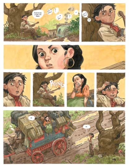 Django Reinhardt's early life told in graphic novel form. If you aren't familiar with Django, he's one of the first guitar greats. He was a child prodigy, playing professionally with adults by the time he was 10 or 11. He originally played banjo until a fire badly burned his hand leaving him without the use of a couple of his fingers. At that point he had to teach himself how to play again, this time on guitar.