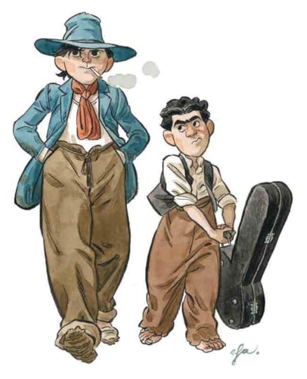 I very much liked Rubio and Efa's comics biography Monet: Itinerant of Light, a few years ago, and I enjoyed almost as much their biography of Belgian born Romani-French jazz guitarist and composer Django Reinhardt, certainly one of the greatest guitarists of all time, who died at the early age of 43. This comics bio is fine, maybe a little cartoony, but colored beautifully, focusing on his early life. Maybe since it was kid-oriented it featured a bear and monkey that traveled with their family. It's too short, really, but a good introduction to his early life, and then there's a written bio that follows it (though it repeats some of the same information) with photographs, and references. The idea is to create an entertaining tale of his "gypsy" life. There's not much more than mentions of the music, however, one of the limitations of a comics bio.