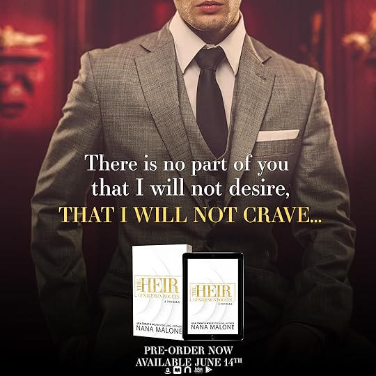 THE HEIR is the prequel novella in Nana Malone’s contemporary, adult GENTLEMEN ROGUES erotic, romantic suspense series. This is twenty-two year old Saffron Abbott, and billionaire playboy Lachlan King’s story line.