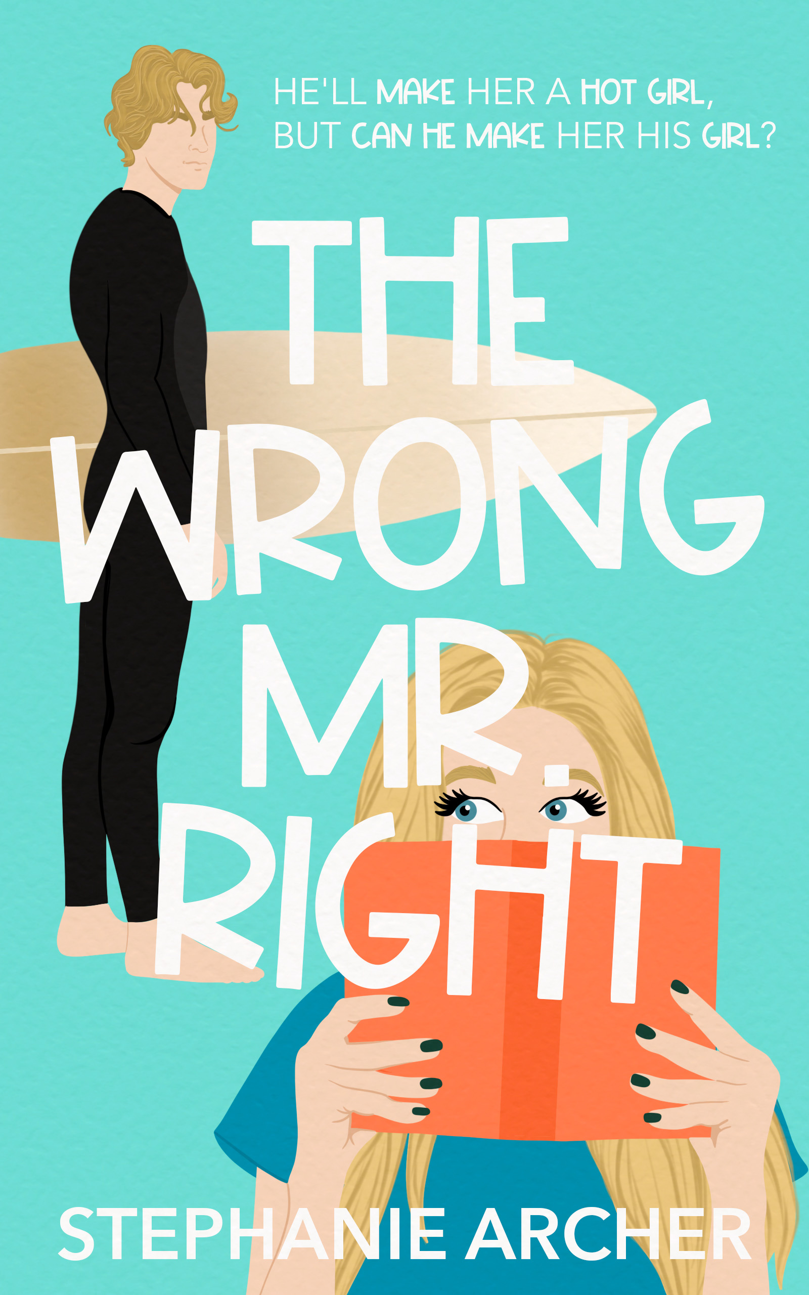 Stephanie Archer does it again! With her 30th birthday approaching, Hannah looks around her life and decides that she is going to change. She is determined to step out of her shell and become someone her mom would be proud of; her goals are to fall in love, become a “hot girl”, and save her failing book shop. In order to complete her goals, Hannah enlists the help of Wyatt, the local hot surfer. Wyatt agrees to help Hannah if she manages his social media platforms, as he is hoping to go pro and looking for surfing sponsorships. Wyatt pushes Hannah out of her comfort zone and in turn, Hannah does the same for Wyatt. The two develop a fast friendship that turns to more as Wyatt watches Hannah go on dates and realizes he wants to be the one going out with her.