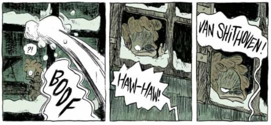 That opinion notwithstanding, this book is, actually, really, really, really good. Both the writing and the art are fantastic (a rare achievement in comics where usually either one or the other is lacking), and I say that as someone who never spent much time thinking about ‘genius,’ classical music, or, indeed Beethoven himself (I’ve started listening now though!). I never thought I would enjoy this book, due to its subject matter (and because I assumed it would go down the two routes most comics biographies go which is either nauseatingly laud their genius and superduper specialness or go the annoyingly predictable edgy route and instead show what a problematic alcoholic/depressed/etc person they actually were) but Ross’ writing made me just understand and be curious about Beethoven and care about him. He is also a great cartoonist and the characters’ design, body language and acting is over the top without ever being tiring, distracting or silly (except when it’s meant to be). It only adds to the story. I found myself near or in tears a full THREE times while reading this, which very rarely happens with comics for me, and laughing out loud even more often.