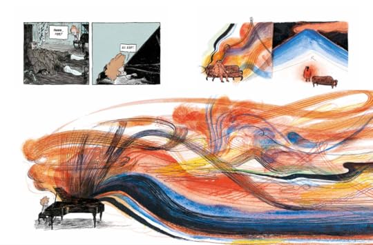 The narrative is a little manic - and the cartooning even more so! - but it’s a wonderful way to show the creative genius of Beethoven buzzing wildly around him in his youth, waiting to come out properly. The art is gorgeous, with possibly the best evocation of the experience of listening to music I’ve ever seen on the page, and for all its earthiness it’s a book that celebrates beauty and art to its fullest extent