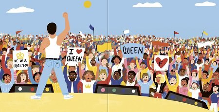 As a big Queen fan, I was very curious about this book. While I knew the facts mentioned in the book, I still enjoyed reading it. And I was impressed by how big topics (AIDS, death) were approached in gentle ways. The only thing I can think of, is that I would have loved to have some song titles in there to connect with the readers.