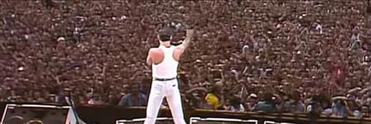 We Are the Champions from the 1985 Live Aid Concert at Wembley Stadium is exactly as illustrated in this little book. Enjoy! https://www.youtube.com/watch?v=FP808...