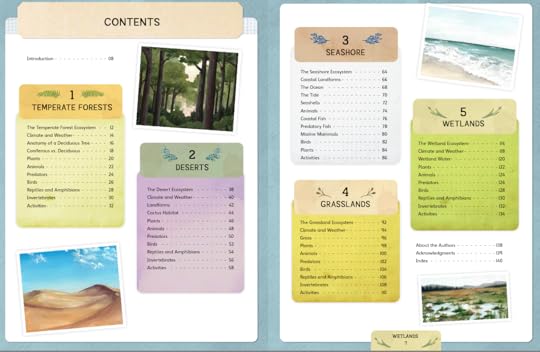 Beautiful, educational, and fun! I absolutely love how educational this book is, but in a fun way that engages with school aged children. This would be a phenomenal science addition to a homeschool family, a school library, or for any nature loving family. There are a ton of activities to do with your children - like an ocean in a bottle, & bark and leaf rubbings. Overall, this book is packed with a ton of education about temperate forests, deserts, seashore, grasslands, and wetlands!