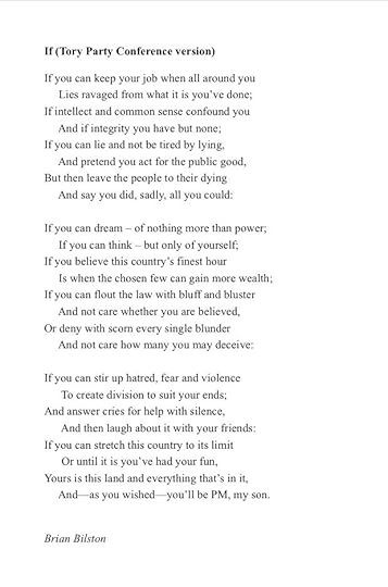 I discovered Brian Bilston from his Facebook postings. He’s a truly gifted poet - excellent in his words and layout. His poems are often thought provoking or humorous or moving.