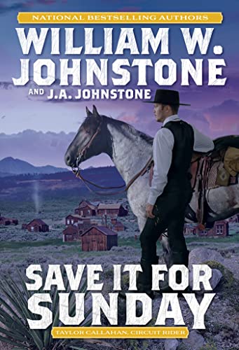 William Johnstone's Book 2 in the Taylor Callahan series, Save it for Sunday (Pinnacle Books 2023), follows the journey of a circuit riding preacher who spreads the good word to anyone who will listen long enough to tithe whatever they can afford. Callahan doesn't care how much that is, even if it's only bed or breakfast. He has lost everything important including his will to achieve what used to be important to him, except one: a fundamental sense of justice. On his way to one more wayward town, he comes upon a dying stage coach driver, flagged down another stage coach to assist., but the injured driver dies before they can get him to the closest town, Peaceful Valley. It seems as good a place as any for Callahan to preach the good book until the sheriff is shot and Callahan is called to replace him. What happens next puts the former Confederate soldier, retired rebel gunfighter, now peaceful preacher in the middle of a fight he can't avoid and shouldn't lose.