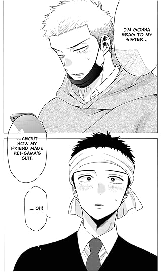 Watching him wrestle with his self-doubt, get a very mild nudge from Marin, and then shift into the freaking professional badass that he is? Never has eyeliner been so cheer worthy. The art in this series is typically flawless, but it gets the nuance of this scene across and the shift in Gojo SO right.