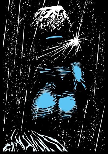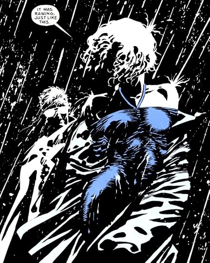 Well . . . the review for your book won't exactly be 'good,' Marv. (Please don't hit me. XD) Hulking, reserved Marv - memorably portrayed by Mickey Rourke in the two cinematic adaptations - is undoubtedly the MVP of this volume, with his two segments - the violent opener 'Just Another Saturday Night' and the nearly wordless 'Silent Night,' in which he's in full-on heroic mode (!) - being the most memorable and action-packed of eleven short stories from Miller's darkly off-kilter crime noir series. Over half of them are forgettable and/or much too brief to make an impression, although 'Blue Eyes' and 'Wrong Turn' (which both feature azul-attired women who are equal parts duplicitous and deadly - watch out, all of you weak-willed fellas) each had their slinky if predictable charm.