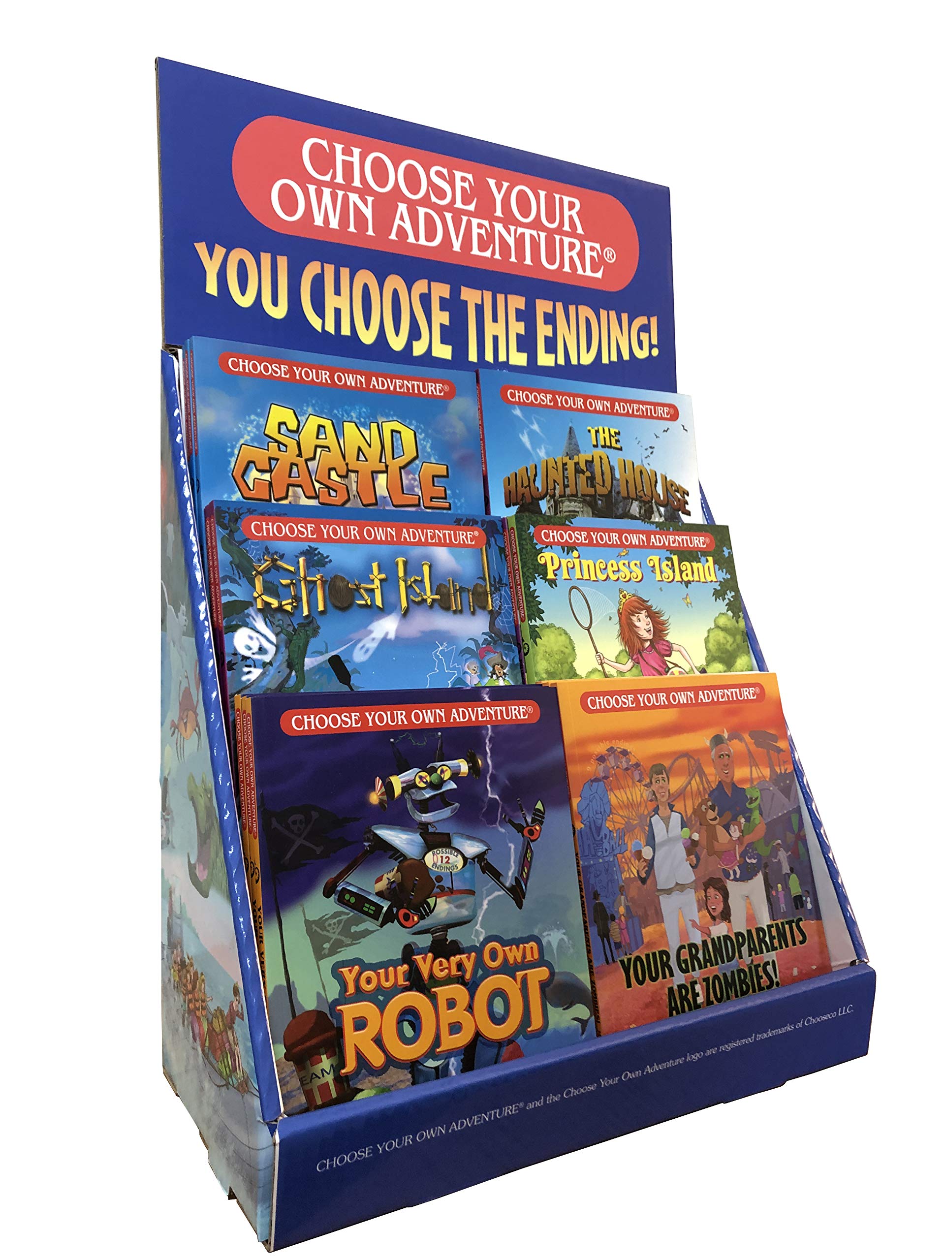 BEST VALUE - Includes 18 colorful Choose Your Own Adventure younger reader books (ages 5-9) and the display . Why pay extra for individual books when you can get them all AND a super cool display to show them off? APPEAL TO BOYS AND GIRLS - Filled with adventure, friendship, action, and mystery that will appeal to both boys and girls. MAKES A GREAT GIFT! - Featuring dog pals, fun and adventurous grandparents, birthdays, robots, and more, the Choose Your Own Adventure Little Library is perfect for almost every occasion. No need for wrapping paper. EDUCATIONAL - Larger font size, fewer words per page, and more white space helps kickstart literacy for younger readers.