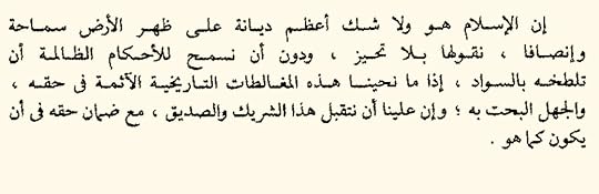 "إن الاسلام هو ولا شك أعظم ديانة على ظهر الأرض سماحة وإنصافا، نقولها بلا تحيز، ودون أن نسمح للأحكام الضالة أن تلطخه بالسواد، إذا ما نحينا هذه المغالطات التاريخية الآثمة في حقه، والجهل البحت به، وإن علينا أن نقبل هذا الشريك والصديق، مع ضمان حقه في أن يكون كما هو".