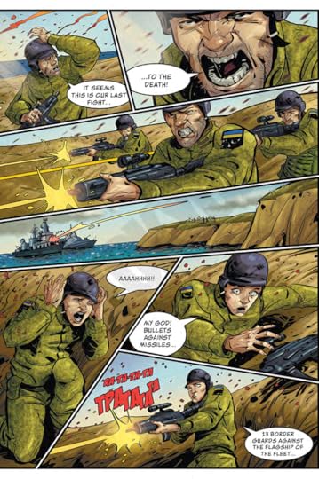 And then there's the book itself, which is mostly written by one author, with the art divided up between several artists - all of them Ukranian. Are these the best stories? No. They become a bit repetitive, and they are, in essence, propaganda. Propaganda from the right side of a horrific war, absolutely, but still propaganda.