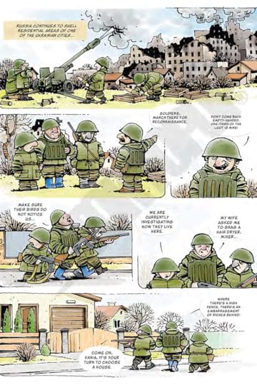 Propaganda gets a bad rep (thanks, Goebbels), but it's a means to and end. You can use it to dehumanize a country in order to invade it. Or, you can use it to boost morale, bring support, and tell your side of the story. With a few flourishes, but hey, you do what you have to do. I feel like this little book will be analyzed in the future by historians as an example of what I described above. I cannot be super objective as I am quite invested in this war and one extra reason I bought the book was that part of the money would be donated. But even so, some of the stories made me feel things, the artwork is really good, and giggled a bit at some jokes I got better due to having been to Ukraine after 2014, when some of the messaging was starting to develop. Overall, if you want an objective look at the war, read the press. If you want to support Ukraine, pull out your wallet.