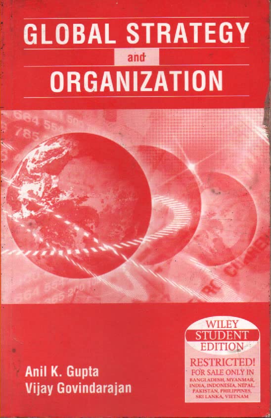 In the battle for global dominance, only those organizations that lead the ongoing globalization of their industries will succeed. That’s why students need a strategic framework that they can apply in a global setting. In GLOBAL STRATEGY AND ORGANIZATION, awarding-winning scholars and teachers Anil L. Gupta and Vijay Govindarajan focus on the four essential tasks for transforming a company in a global Identify market opportunities worldwide and pursue those opportunities by establishing the necessary presence in all key markets Convert global presence into global competitive advantage Cultivate a global mindset Strive to reinvent the rules of the global game Each chapter focuses on a specific, action-oriented issue. Reports on the activities of real firms, such as Wal-Mart, Dell Computer, and Canon, provide insights into the challenges associated with globalization and illustrate the author’s findings.