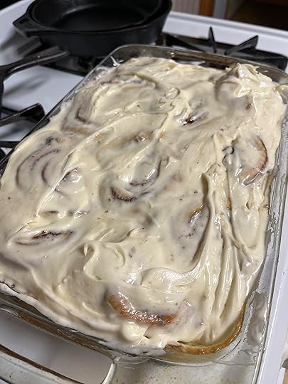 “After Dad left, Mom used recipes to create new things for our just-the-two-of-us life. Dad used to enjoy the cinnamon rolls, so it was the first recipe she changed. She added heavy cream to the rising buns, and they became more fluffy, full, and rich in flavor. She also doctored up the cream cheese frosting until it was so thick it formed upright peaks in the mixing bowl, then, once spread on the baked rolls, melted down into each gooey crevice.”
