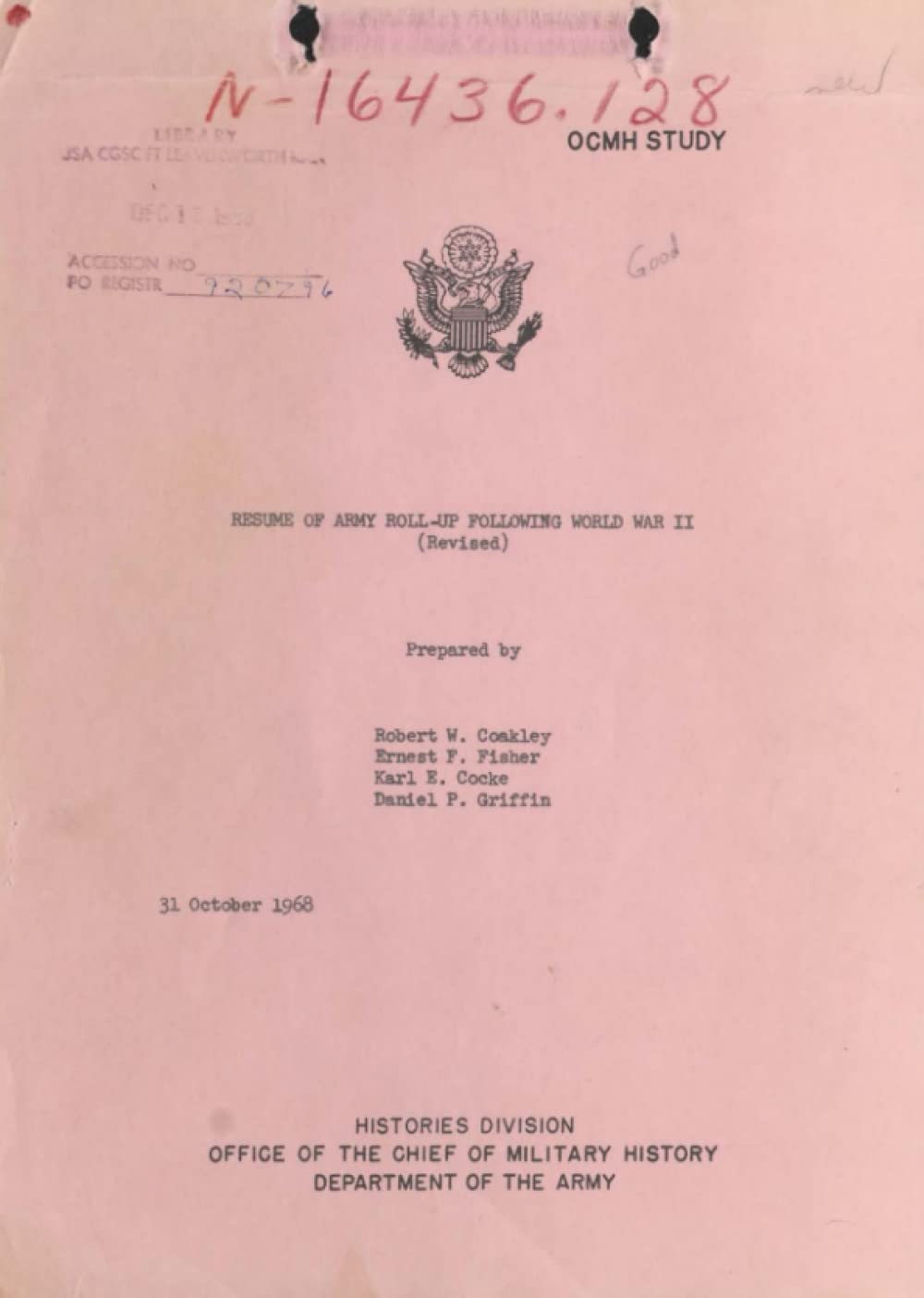 Resume of Army Roll-Up following World War II (Revised). OCMH Study: General Military History