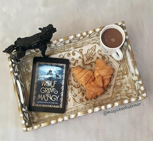 As the blurb aptly warns, A Wolf So Grim And Mangy is the tale of a disillusioned former fantasy believer in her fifties. Her name is Edi (short for Edith), who occasionally wishes she were someone else, doing something else and living anywhere else, because anything would be better than her lonely life and rubbish job. When she ends up standing on a spot vacated by a toilet wiping dog pee from her ankle with an idiotic map after reading from a weird magic book and is Once Upon A Timed to a stunningly beautiful freeze-your-arse-off mountain in the middle of nowhere, no one can really blame her for cursing the Great Beyond's idea of a cruel joke. I bet you can't read that whole sentence without stopping to take a breath. :D But back to the book, because I digress - of course our Edi won't find a handsome prince waiting for her on arrival. Because this is a real story and the real deal. She gets a mangy wolf instead. ;)
