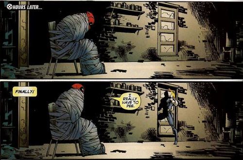 Acá vemos al Deadpool violento y que adora matar por sobre casi todo, al irreverente que siempre hace bromas de lo más inoportunas y al héroe. Al que hace lo correcto, porque a pesar de todo lo anterior, siempre sabe lo que es correcto. Con tan poco respeto por su propia vida como por la de los malos, pero siempre cuidando de aquellos que no pueden.