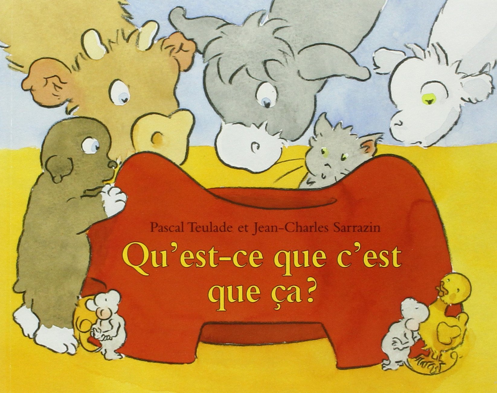 Dans la cour de la ferme, il y a un objet bien étrange. « Qu'est-ce que c'est ? » se demandent les souris, le poussin, le veau, et l'ânon. Une baignoire ? Un bateau ? Une chaussure ?