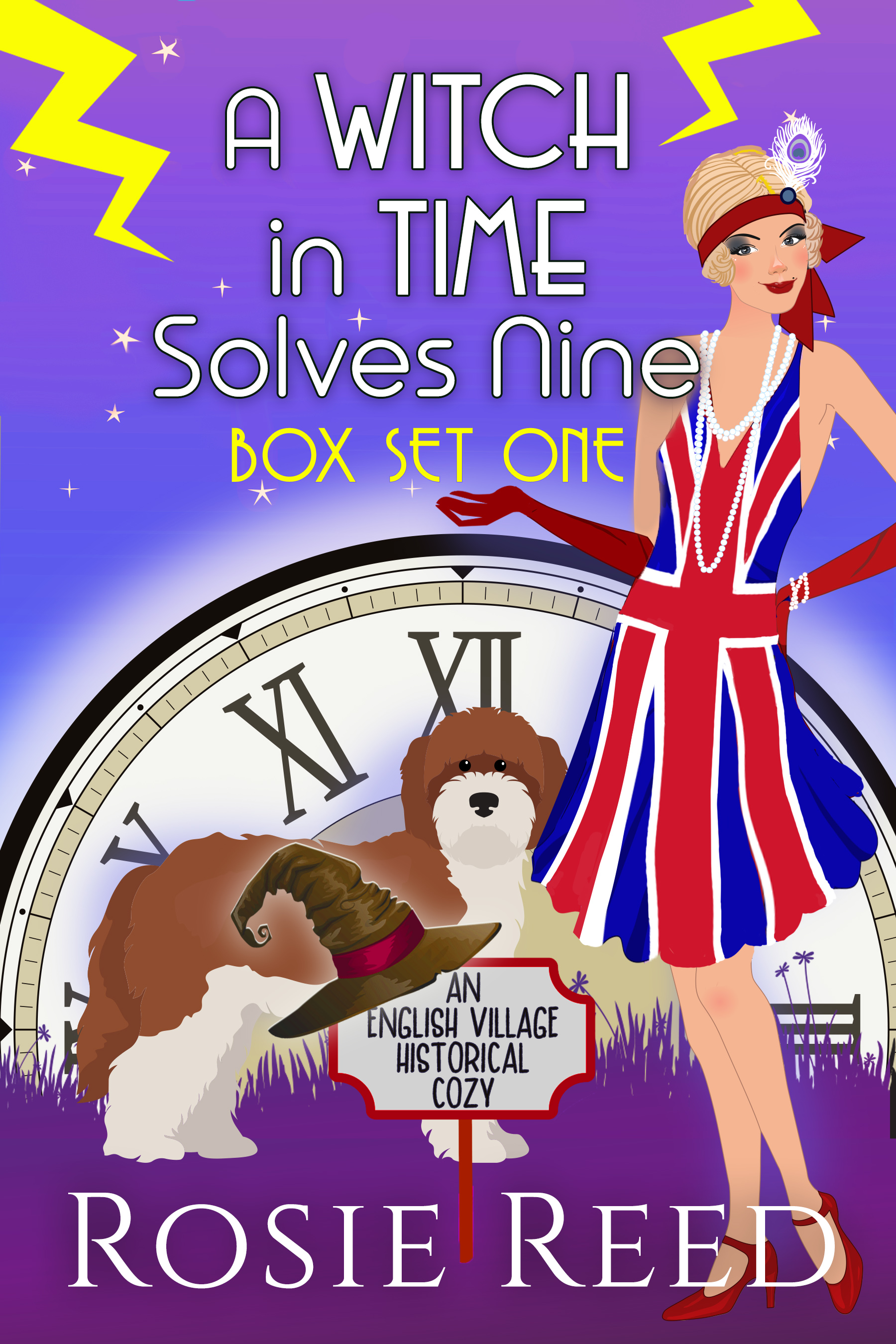 A Witch in Time Solves Nine by Rosie Reed takes us back in time in more ways than one! It’s an English Village Historical Cozy in a box set with three stories that take place in 1906, 1916, and 1923.