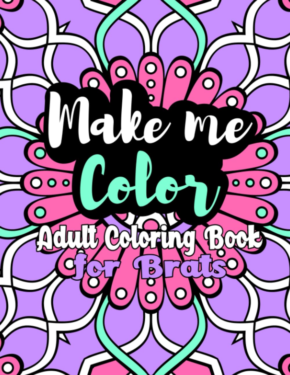 Twenty-five single-sided floral and mandala adult coloring pages with brat-inspired quotes.