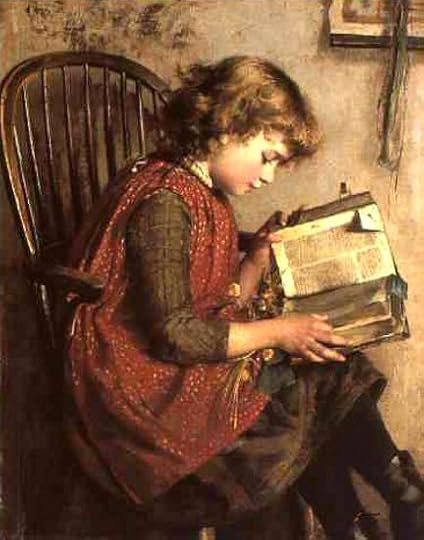 And when the sunshine grew strong and lasting, so that the buttercups were thick in the meadows, Silas might be seen in the sunny mid-day, or in the late afternoon when the shadows were lengthening under the hedgerows, strolling out with uncovered head to carry Eppie beyond the Stone-pits to where the flowers grew, till they reached some favorite bank where he could sit down. […]. Sitting on the banks in this way, Silas began to look for the once familiar herbs again; and as the leaves, with their unchanged outline and markings, lay on his palm, there was a sense of crowding remembrances from which he turned away timidly, taking refuge in Eppie's little world, that lay lightly on his enfeebled spirit.You can’t entirely absolve such passages from the charge of sentimentality, and there are several pages (which I shan’t quote) that may well go over the line. This is exacerbated by the curious form of the book, which is divided into three: Part One (155 pages in my edition), Part Two (50 pages), and Conclusion (3). To all intents and purposes, the story is over by the end of Part One. Yes, there are some loose ends to be tied up, which Eliot takes care of in Part Two, set 14 years later, but most of that section is merely basking in the situation that had been reached at the end of the previous part. But it does end in a celebrated paragraph that, sentimental or not, brought tears to my eyes: