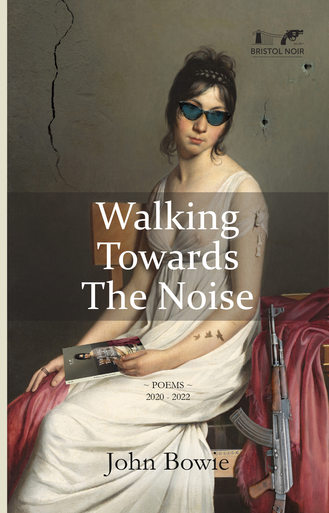 Clocking in at ~82 pages, Walking Towards The Noise is a generous new volume of poetry from Bristol Noir’s founder and EIC, John Bowie. Comprised of poems penned during the Covid-19 pandemic, this collection is split into three sections: MASK ON, MASK OFF, and MASK ON (AGAIN).