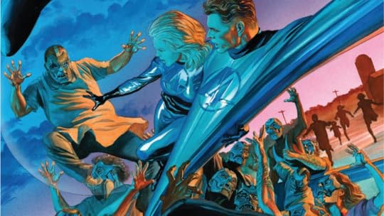 Well, although those 'FF' fellas cut to the chase by choosing a single word to describe their latest sci-fi adventure, I have coined a phrase for it - 'Marvel malaise' (trademark pending, BTW 😉). On the heels of reading good but not necessarily great graphic novels with Dr. Strange and Daredevil - plus a wretched one with Hellcat - the latest restart of Marvel's 'first family' also seemingly lands in the same territory as a perfectly adequate romp but not much more. It didn't help that this long-running squad was initially kept apart by showcasing them in a few so-so solo stories - interestingly, Johnny Storm's moment seemed sort of silly, but then it surprisingly redeemed itself somewhat with the plot angle of having the villain cleverly exploit his so-called 'weakness' (that is, the warmhearted Storm would NEVER use his fiery powers to actually hurt folks, so the deplorable bad guy proceeds to insultingly curb stomp him until Storm devises a savvy retaliation). When the classic team finally reunites in the closing chapters to confront an expected otherworldly threat the narrative flow is strengthened foursquare - though protracted sci-fi glop dialogue occasionally strained the eyes - and had me interested in checking out the subsequent volume to see how things will shake out for them.