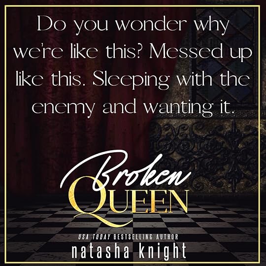 Broken Queen is the conclusion to the Ruined Kingdom Duet, and as such, YOU MUST READ Ruined Kingdom (Book 1) FIRST! Broken Queen came out of the gate with a bang, which wasn't surprising after that brutal cliffhanger ending, so I'm not coming off very much detail since I despise spoilers. I was patting myself on the back for sussing out something big, but let me tell you, it was only a tiny piece of the puzzle that's for sure. Natasha Knight is simply brilliant at telling stories with a ton of layers, so even if I get something right, there's always so much more to it that blows my mind. The twists were coming in hot per usual, while the heat was intense, but it was the emotional goodness that really did my heart in because it seeped out of my kindle to surround me, and my eyes tried to go rogue. If you're as dark & twisty as I am, then you can't go wrong with anything Natasha Knight writes, and I HIGHLY HIGHLY HIGHLY RECOMMEND!