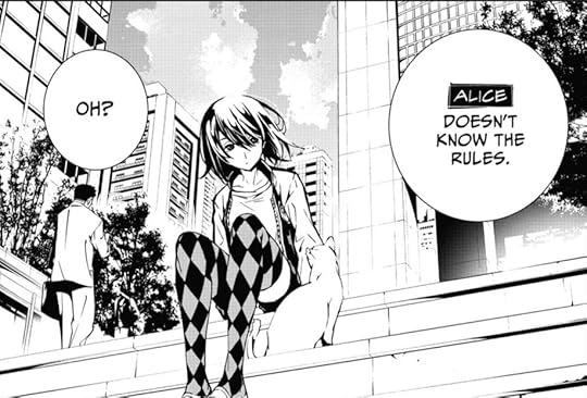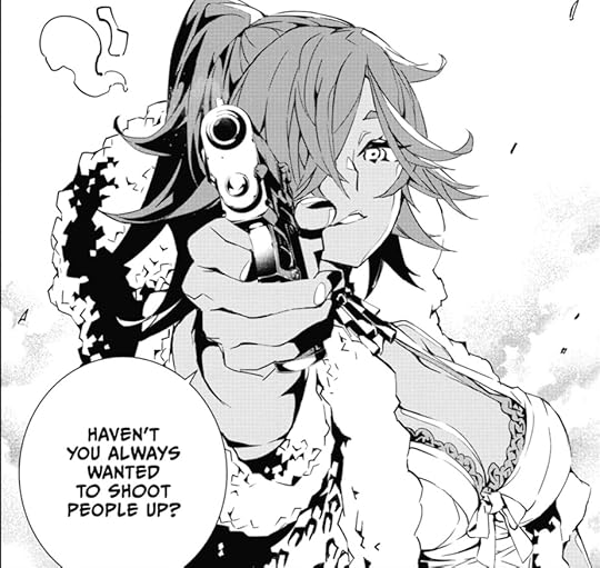 All jokes aside, this is just bizarre action scenes, censored sex, weirdly placed gore, and cryptic phrases that don't mean much of anything besides potentially dark fantasy nonsense. Pretty in key for SINoALICE, but it's only reading the English translation of this volume that I realize how poorly that atmosphere translates overseas. Maybe it's because it doesn't have the talented voice cast adding their swing to it. Something is missing in this one.