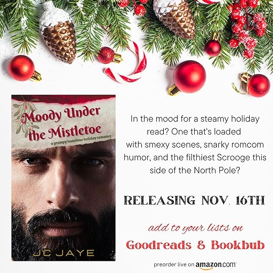 Moody Under the Mistletoe is the perfect Christmas story to heat up your life. This spicy, slowburn, grumpy/sunshine was a quick simple read. I enjoyed the plot and characters, and I definitely wouldn't mind a PF in my life. Hes so grumpy, a total scrooge, but his alpha side and filthy mouth did it for me. And Jules, she is such a cute, bubbly, ray of sunshine who loves everything there is to offer when it comes to Christmas. Watching her break down PF's walls and sneak into his heart was the best. And damn, if she doesn't have a filthy mouth on her too. I laughed, I swooned, I blushed, but mostly I fell in love with the characters and storyline. I would definitely recommend this one.