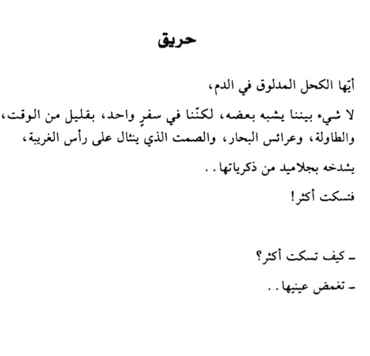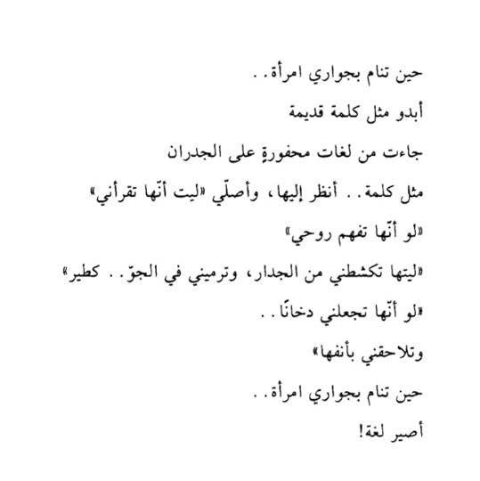 لم يكن مجرد شعر لم يكن مجرد غناء كان ماء حقيقي ينسكب على روحي حتى الرموز الـموشومة بين صفحاته تسيل كـ كحل لايتبعه أثر أنت لن تقرأ لن تتفلسف كثيرا أنت فقط ستقتبس ضوء شعر وتـ نهيه بــ"الله"