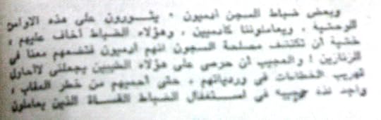 كذلك كان الكتاب يتحدث عن عجائب في عالم السجن..كمن ضحى ببصره؛كي يدخل المستشفى ويمضي باقي محكوميته فيه ويرتاح من السجن..وكأن نعمة البصر لا قيمة لها أمام أن يكون المرء شبه سجين، وشبه حر، وشبه آدمي!!