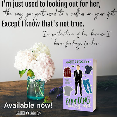4 and 1/2 Stars I have very much enjoyed all of the books that Angela Casella has written, in particular I have enjoyed her Fairy Godmother Agency series. I've enjoyed them so much because the characters she has written about are just so entertaining that I have a hard time putting the book down. In particular I enjoy Damien and Nicole, because they are the "fairy godmothers" of this series you see a lot of them. And they are the ones that instigate a lot of the hilarious shenanigans that happen in the books. One of my favorite aspects of A Brooding Bodyguard was the dynamics between Sinclair and Rafe. In enemies to lovers romances like this book the bickering with an underlying tension is always my favorite part and Angela really nailed it for Sinclair and Rafe. I mean she threw a ceramic banana at him and everyone thought it was a ceramic something else if you know what I mean lol. And because of that Rafe would tease her by calling her Clay. I won't lie it took me a little bit too long to realize why he was calling her Clay but as soon as I did I was like ohh this is going to be good. For whatever reason I missed book two, A Stolen Suit, in the Fairy Godmother Agency series. Having missed that book there were times I was a little confused. In particular I was confused wondering who the character (and ML of A Stolen Suit) Enoch was. I kept being like did I just forget him from book one, which honestly wasn't unlikely. But with that aside I don't think you absolutely need to read the previous books to enjoy this book. But having read book one I think I enjoyed it more than if I didn't.