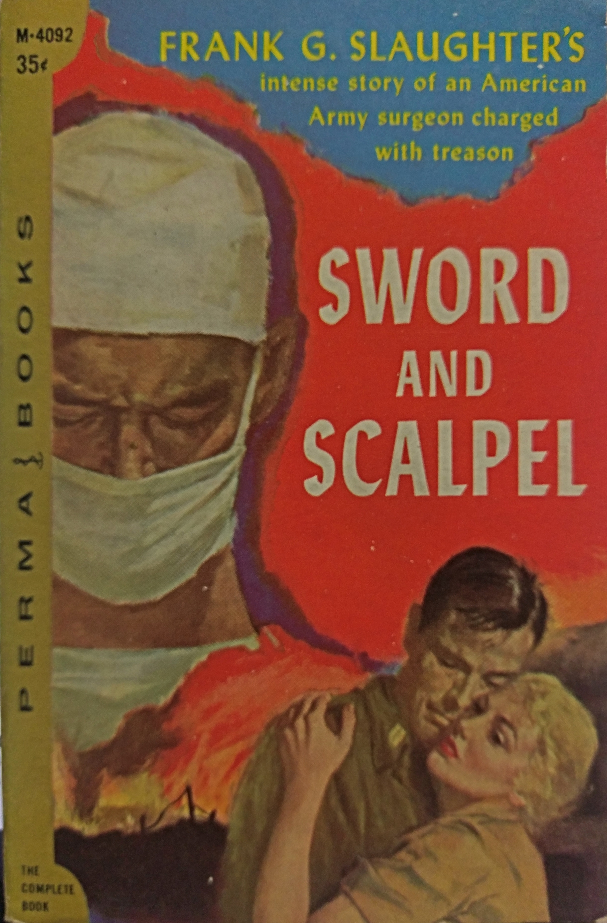 SWORD AND SCALPEL, by Dr. Frank G. Slaughter, is a Korean War-era novel. It is the story of Dr. Paul Scott, a Johns Hopkins-trained surgeon who is taken prisoner by the North Koreans when they overrun his frontline MASH unit at the outset of the Korean War. Dr. Scott is imprisoned in Pyongyang along with his Commanding Officer Colonel Jasper Hardin, Kay Storey a famous entertainer known as "The Girl Next Door," and the unit Chaplain, affectionately known as Father Tim. While imprisoned, the Americans are subjected to torture, sensory deprivation, brainwashing, starvation and all forms of physical and mental abuse. The frail Father Tim becomes deathly ill and Kay Storey is threatened with ongoing sexual abuse. In order to spare his friends from death, Dr. Scott chooses to sign a spurious War Crimes confession. After they are repatriated, Colonel Hardin has Dr. Scott Court-Martialed.