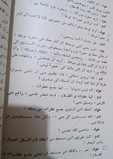 بس فيه نقطة ساخرة فكرت فيها قبل نهاية الرواية او في منتصفها كمان .. عمال اقول المفروض ادم يقولها ما تقعدي بقى يا ولية او يقولها صدعتيني بأسئلتك اللي مبتخلصش دي خههههههههههه حواء دي رغاية اوي زايي .. انا كمان بسأل كتير زاي حواء في روايتنا هذه وبسأل في تفاصيل وبرغي يامة وأحب حد يستحملني كدا زاي ادم بل يكون شريك في متعة التفكير ومتعة السؤال في التفاصيل مش فقط مجرد رادد على اسئلتي وخلاص .. علشان احس ان الطرف الاخر مستمتع وميتضايقش