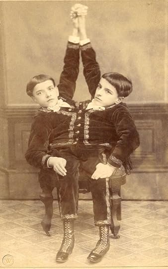 The idea for this came from a pair of real Italian conjoined twins who were touring America in a freak show, Giacomo and Giovanni Battista Tocci, shown here: