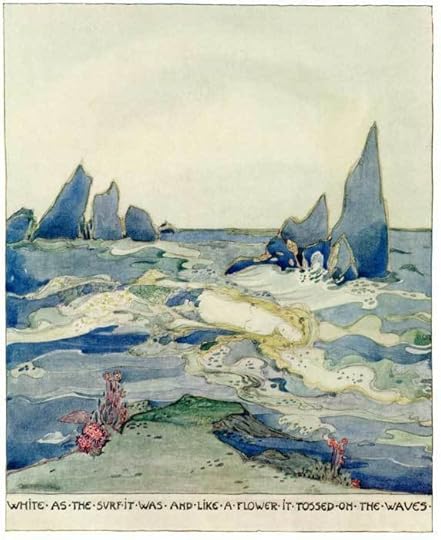 Image: “ White as the surf it was, and like a flower it tossed on the waves.” Illustration by Jessie M King (Source)