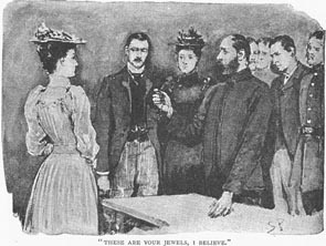 The story revolves around the theft of a ruby necklace belonging to Persis Remanet, a young wealthy American woman visiting London in the hope of ensnaring a man with a title. The police detective investigating the robbery, Mr. Gregory, suspects Sir Justin O’Byrne, a poor Irish baronet, of the theft. Neat Victorian Detective story with a nifty twist at the end. Sir Justin had paid Persis a great deal of attention.