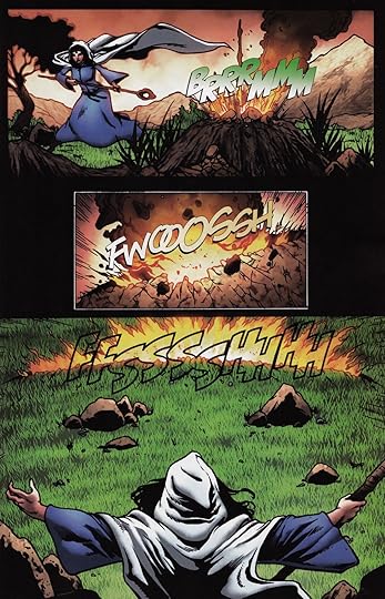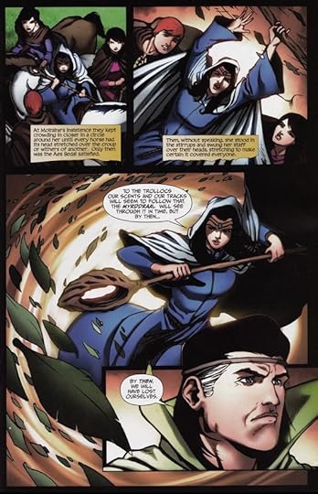 But good things first, right? We got to see some more channeling this this volume, with Moiraine using more of the Five Powers that had not previously been illustrated in the graphic novels. She used Fire to get rid of some Trollocs and Halfmen and stuff: She also used a weave of Air, which I thought was depicted well: And there was also some weaves of Spirit, but I showed a picture in my review for the second volume, which I think is a better representation that anything in this volume.